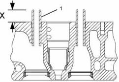 CAT卡特C13珀金斯Perkins2206發(fā)動機氣門導(dǎo)管頂部到氣缸蓋表面的高度(X).. 35.00 ± 0.50 mm (1.378 ± 0.020 inch)