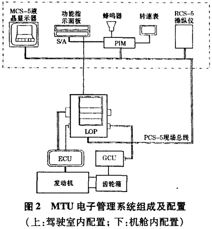 德國奔馳MTU電子管理系統(tǒng)由柴油機(jī)控制單元( FCU)、柴油機(jī)監(jiān)測單元( EMU)、機(jī)旁控制箱(LOP)和一套裝在柴油機(jī)上的傳感器組成。