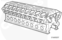 缸體的干重為 1,280 kg [2,822 lb]。缸體配備的加強板可提供更高的強度和剛度。缸套擴孔突起,可改善在活塞頂部行程時冷卻液流向活塞環的效率。