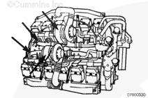 拆下康明斯渦輪增壓器隔熱罩。參考第 10 節中的步驟 010-076。