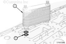 拆下康明斯機油冷卻器蓋。參考第 7 節中的步驟 007-045。