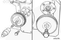 拆下附件驅動皮帶輪。 參考步驟 009-004。拆下充電機驅動皮帶輪。 參考步驟009-010,
