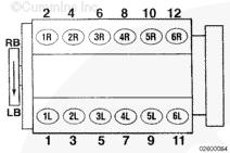 當提到系統電子設備時,采用的是標準氣缸編號系統。這僅適用于帶電動噴油器的發動機上的電子系統部件。