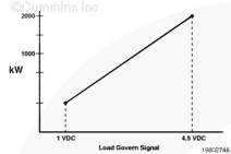 當(dāng)負(fù)載調(diào)速信號在 1 VDC 和 4.5 VDC 之間,控制系統(tǒng)將按照 kW 基準(zhǔn)和負(fù)載調(diào)速信號之間的線性關(guān)系確定的負(fù)載水平運轉(zhuǎn)發(fā)電機組。