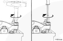 使用塞尺法時,用改錐轉動調整螺釘,直到搖臂剛一接觸到塞尺。