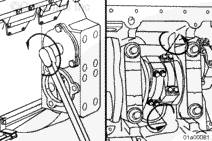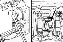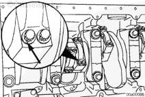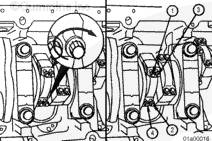 安裝連桿時,連桿(右排和左排)上壓印的缸號必須朝向左排凸輪軸。如果連桿安裝得不正確,可能導(dǎo)致發(fā)動機損壞。