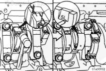 連桿的軸瓦定位舌側(cè)(左排和右排連桿)必須朝向左排凸輪軸,否則可能會出現(xiàn)曲軸或連桿損壞。
