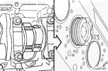 用尼龍導(dǎo)向銷對準(zhǔn)連桿和曲軸,同時將活塞和連桿總成推入到位。拆下尼龍導(dǎo)向銷。