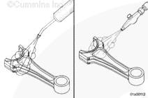 使用兩根 11-mm 尼龍連桿導(dǎo)向銷(零件號 3163363)。安裝導(dǎo)向銷可防止連桿掉落,損壞其它發(fā)動機零件。