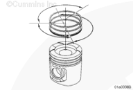 使用活塞環(huán)擴張器(零件號 3823871)拆卸活塞環(huán)。在活塞環(huán)上配一標(biāo)簽,在標(biāo)簽上記錄活塞所屬的氣缸號。