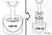 將活塞和活塞環(huán)總成浸在一個盛有干凈的 SAE 15W-40 機油的容器中。將活塞和活塞環(huán)總成從容器中取出,瀝盡過多的機油。