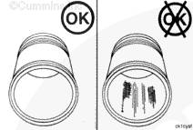 不要用砂布或砂紙去除氣缸套上的積碳。砂布或砂紙中的氧化鋁或硅顆粒會造成嚴(yán)重的發(fā)動機損壞。不要在活塞環(huán)行程區(qū)域使用研磨劑。否則會損壞缸套。
