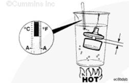 檢查溫度以查看節溫器設計為何時開啟。該節溫器設計的溫度為 77°C [170°F]。額定開啟溫度標記在節溫器的側面。