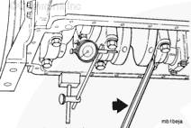 使用千分表測(cè)量曲軸軸向間隙。使用撬棍將曲軸向端部移動(dòng)。將千分表歸零。使用撬棍將曲軸向相反方向移動(dòng)。使用千分表測(cè)量曲軸軸向間隙。