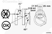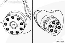 QST30 發(fā)動(dòng)機(jī)曲軸前端的螺栓孔采用滾絲螺栓。清潔滾絲螺紋時(shí),請(qǐng)用溶劑沖洗。用壓縮空氣吹干螺紋。如果還需要附加清潔,用尼龍毛刷進(jìn)行洗刷。