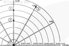 在標(biāo)出的各點(diǎn)之間畫一條直線(從 1 號(hào)至 2 號(hào)軸頸及從 2 號(hào)至 3 號(hào)軸頸),直到所有軸頸都已標(biāo)在極坐標(biāo)圖上。