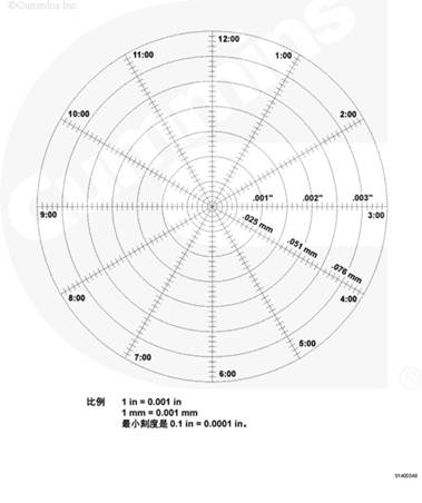 在下一頁(yè)所示的極坐標(biāo)圖上標(biāo)出各軸頸在其時(shí)鐘位置的千分表總讀數(shù)。