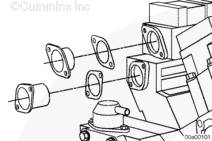 注: 安裝隔套或格柵加熱器時,使零件號朝向沖冷器并使箭頭指向缸蓋。