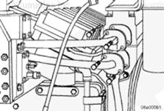 將密封墊安裝在左排中冷器供應管和回水管的端部。安裝螺栓。扭矩值: 65 n.m [48 ft-lb]
