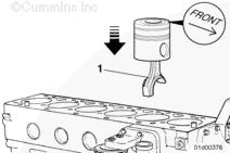 確保活塞頂部的“Front”(前)標記和/或箭頭標記以及連桿和連桿蓋上的編號按照圖示定位。