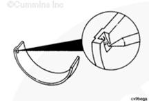 將軸瓦裝入連桿蓋中,軸承的定位舌座入蓋上的槽中。