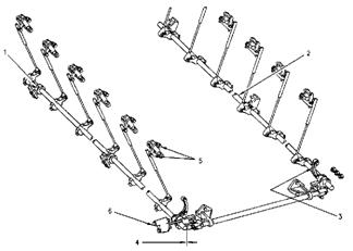 燃油停止供油操縱桿的平面接觸到同步銷后, 把8T-2684 齒條同步測量工具(5)安裝在單體泵和齒條尾端之間的單體泵齒條圓形部位上. 然后用螺絲起子調整控制桿(6)內的調整螺絲. 注意同時細聽調整螺絲發出的“滴”聲至到8T-2684 齒條同步測量工具接適當的接觸到單體泵和齒條尾端扛之間.把螺絲起子從調整控制杠取開, 避免給齒條連桿機構造成壓力