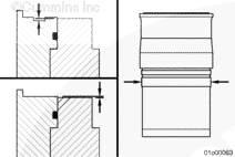 大外徑缸套不會裝入小缸徑缸體中;但是,小外徑缸套可裝入大缸徑缸體中并可能導致故障出現。 |