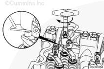 當標記對準康明斯ISX15 CM2250發動機齒輪室蓋上的指示箭頭并且兩個氣門關閉時,松開進氣和排氣門調節螺釘上的鎖緊螺母。將調節螺釘旋松一到兩圈。