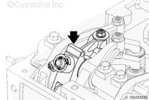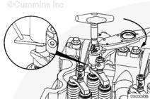 當康明斯ISX15 CM2250發動機搖臂和制動器搖臂都松動時,兩個氣門都關閉。如果兩個氣門沒有關閉,旋轉壓縮機驅動齒輪一整圈,并使前減振器上的 A 標記再次對準指示箭頭。