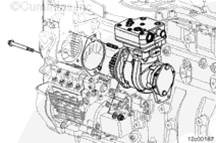 將康明斯ISX15 CM2250發(fā)動(dòng)機(jī)空氣壓縮機(jī)、密封墊、安裝螺母和螺釘安裝到前齒輪室上。