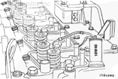 擰緊螺栓后,在缸蓋上鄰近小圓點(diǎn)的區(qū)域做一個(gè)標(biāo)記。