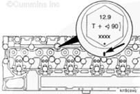 使用螺栓長(zhǎng)度尺(零件號(hào) 3823921)檢查所有缸蓋螺栓的長(zhǎng)度是否正確。