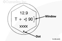 為了精確地使螺栓轉(zhuǎn)動(dòng)到要求的角度,使螺栓與螺栓頭上標(biāo)記的“小圓點(diǎn)”和“窗口”對(duì)正,或者使用扭矩角度計(jì) - 3/4 英寸驅(qū)動(dòng)頭(零件號(hào) 3823878)。