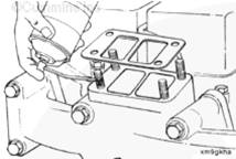 按照圖示線路在進氣歧管上涂抹 RTV 密封膠(零件號 3164070)。