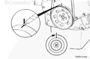 標(biāo)記康明斯發(fā)動(dòng)機(jī)皮帶輪,轉(zhuǎn)動(dòng)曲軸 360 度。