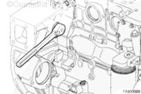 注: 正時(shí)銷用于精確定位上止點(diǎn)以設(shè)置頂置機(jī)構(gòu)。通常正時(shí)銷位于燃油泵下方。對(duì)于康明斯前齒輪系發(fā)動(dòng)機(jī),位于前齒輪室內(nèi)(如圖所示)