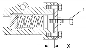 4調(diào)整螺釘(1)i設(shè)匿為17 mm(0 67In) (A)。擰緊螺釘。有關(guān)正確的步驟請(qǐng)參閱《折解和蛆裝》 “發(fā)動(dòng)機(jī)機(jī)油安全閥拆卸和安裝“。