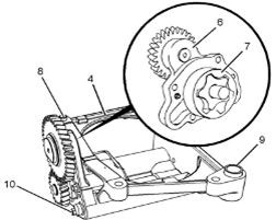 5在外轉子(7)上做些臨時標記。從Perkins1106A/C發(fā)動機機油泵(4)的Perkins1106A/C發(fā)動機機殼體上卸下外轉子(7)。
