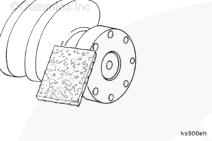 將安裝工具 (C) 的擴(kuò)孔端置于雙頭螺釘上,并且與承磨襯套對準(zhǔn),與曲軸端垂直。將墊圈(D)和螺母(E)安裝到螺紋雙頭螺釘上。