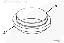 注: 組合曲軸油封 (A) 承磨襯套 (B) 維修用更換組合工具包作為總成安裝在曲軸上。不得從曲軸后油封承磨襯套上拆下曲軸后油封。